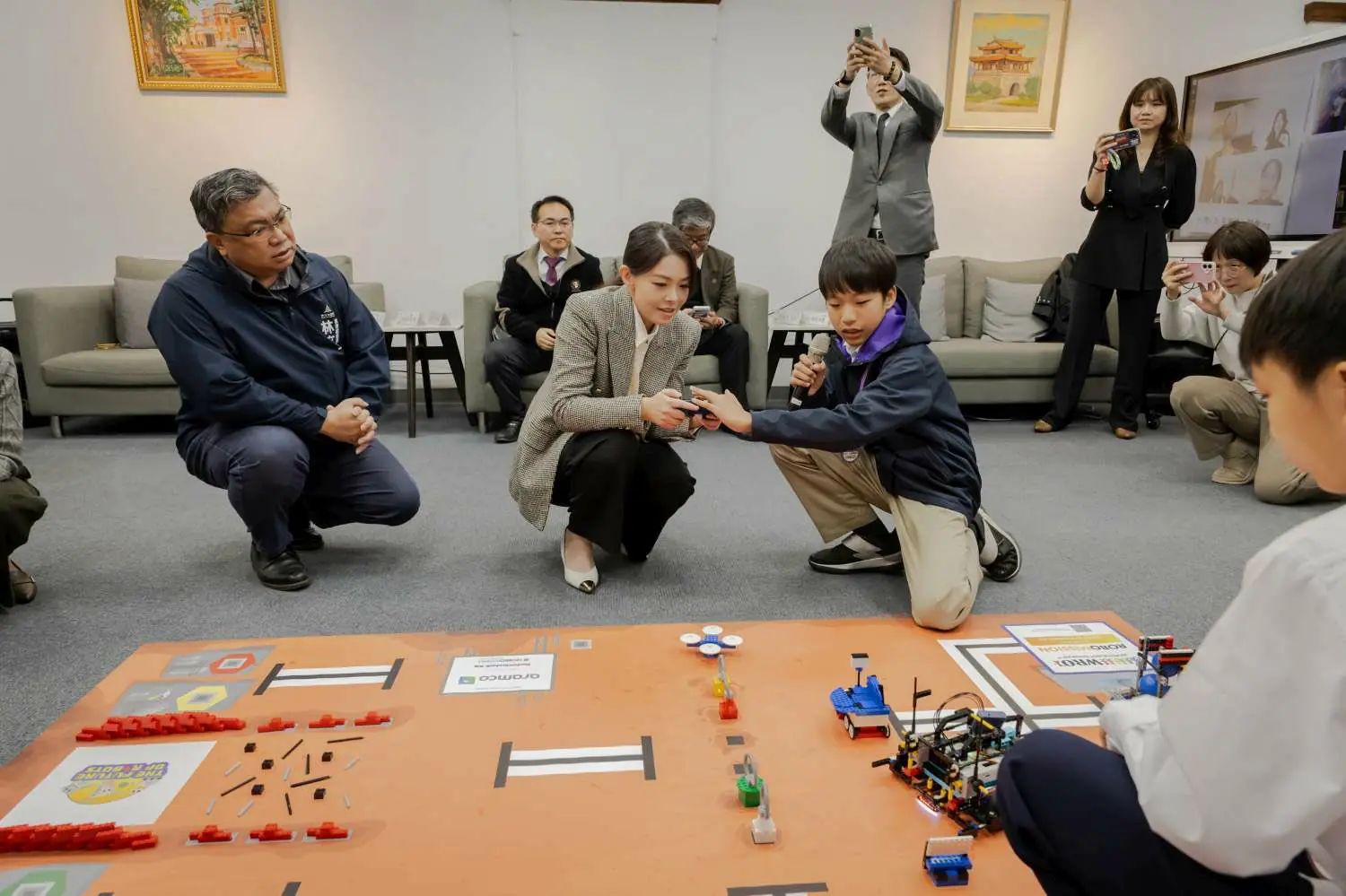 ▲ 高市長現場體驗機器人設計成果(圖取自新竹市政府)
