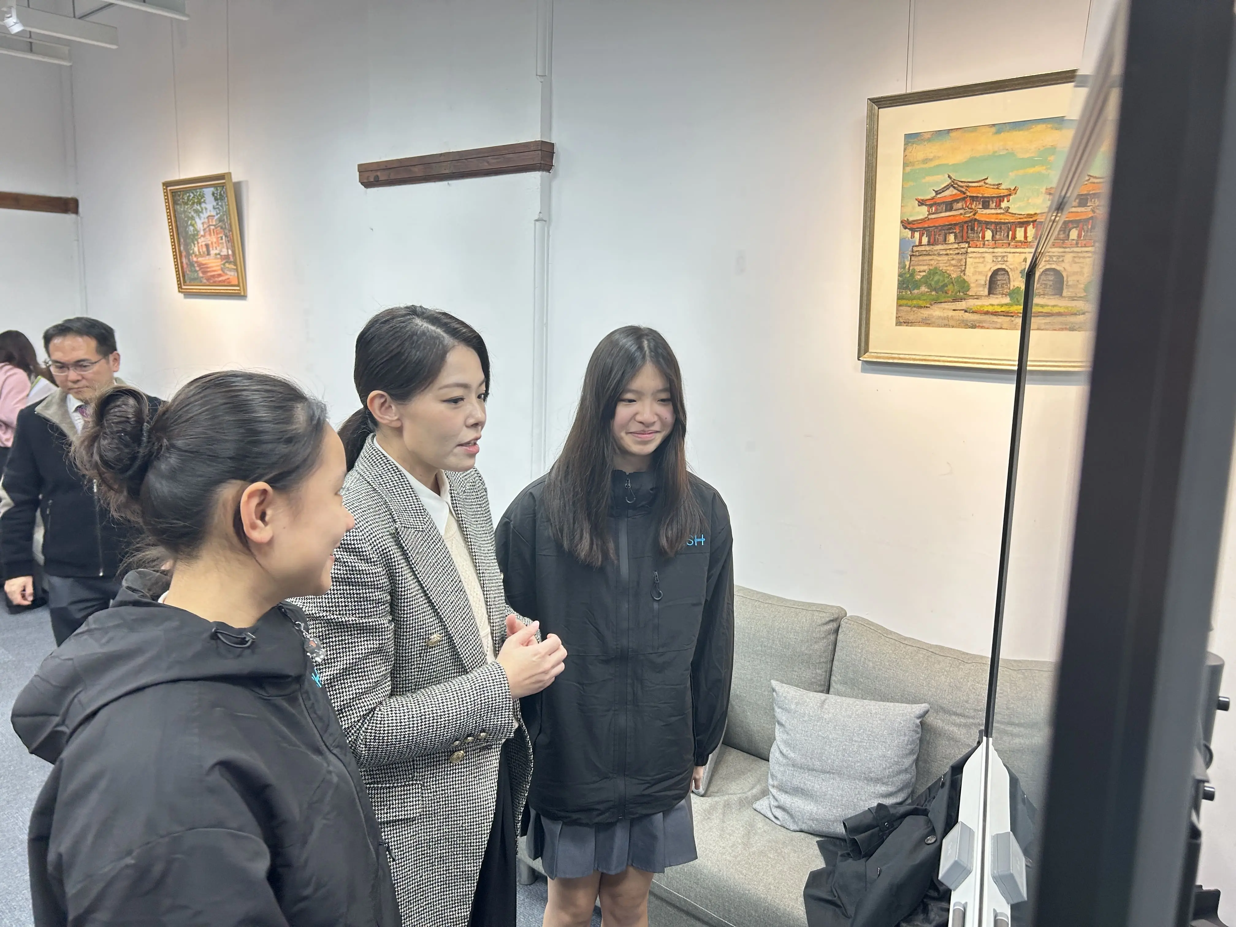 ▲ 邱婕玲與郭蓁於現場向市長說明得獎作品