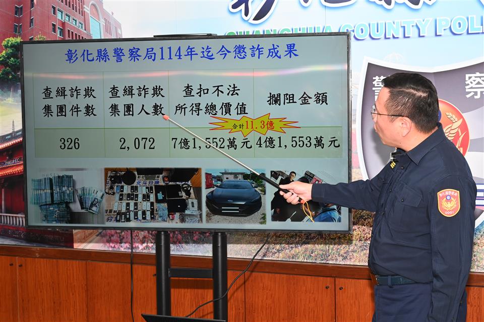 警察局114年1至11月執行打詐成果,累計查獲詐欺集團326件,詐欺集團成員計2,072人次,查扣汽車、現金、土地、房屋及虛擬貨幣等總計價值7億1,552萬餘元,攔阻詐騙金額達4億1,553萬餘元,累計阻斷詐團金流突破11.3億元,展現打詐彰化團隊的堅實戰力。另查獲各類詐欺車手共1,516人次,其中外籍車手的查獲人數達355人次(23.4%),國籍以越南籍最多,達274人次,馬來西亞籍63人次之,男性佔315人次,女性則有40人次。顯示詐騙集團已將觸角伸向在臺外籍人士,也會假藉「來臺打工」、「幫忙領款有高酬勞」等名義招募外籍車手來臺犯案,部分外籍人士因語言隔閡,誤信誘騙而涉入詐騙行為。