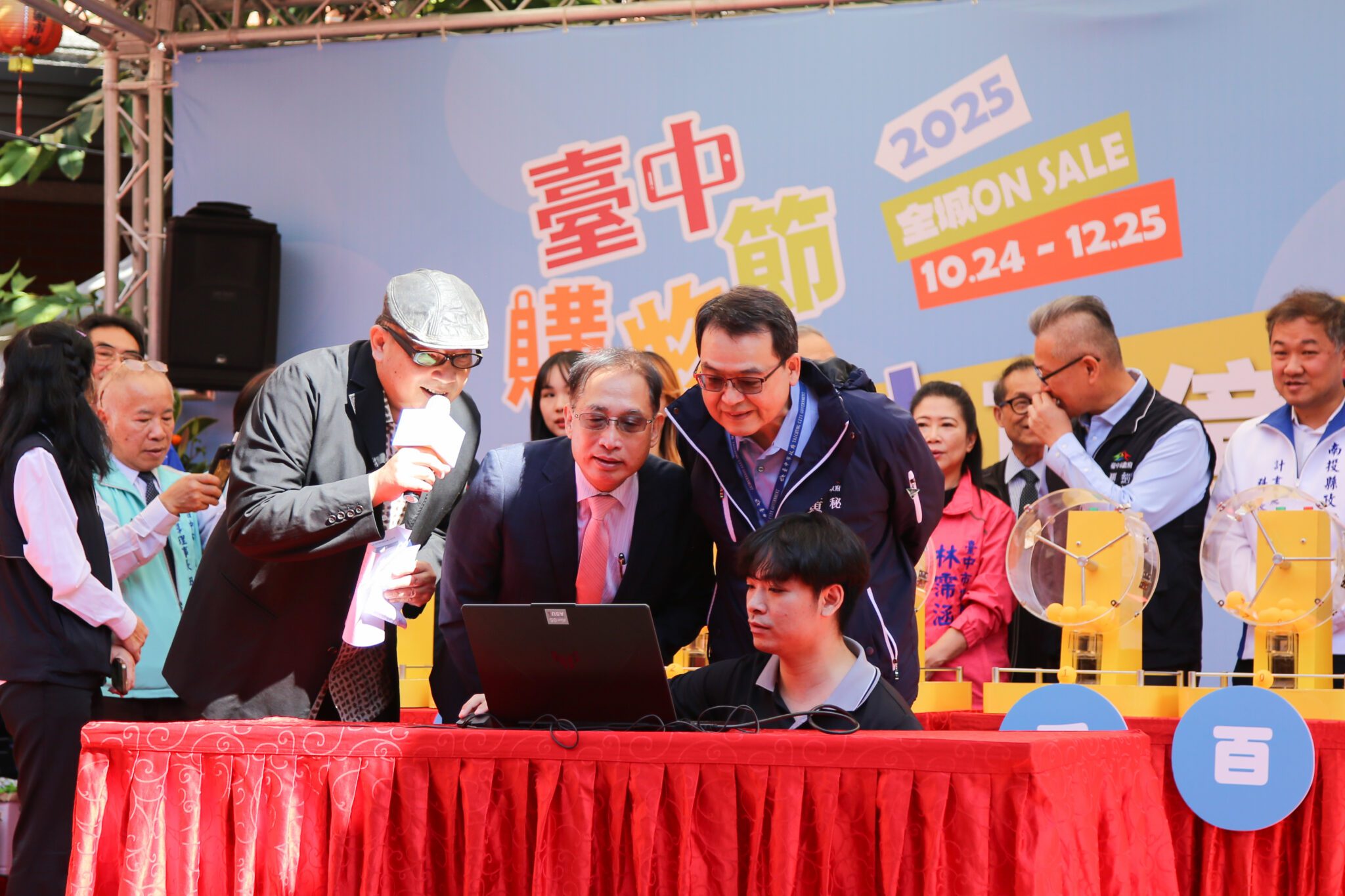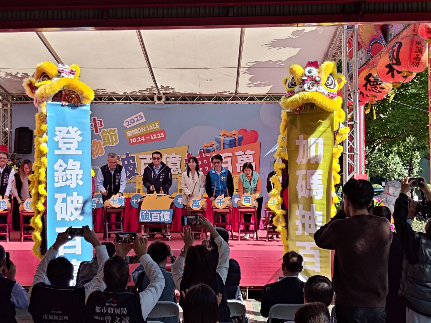 2025台中購物節開跑23天破百億、今(20)日直衝127億!市府為回饋民眾支持,今日在建國市場舉辦「破百億、抽百萬」加碼抽獎活動,中獎人來自西屯區楊先生,成為2025台中購物節第一位百萬得主,同場另抽出第一組外籍專屬1萬美金,以及歡慶APP下載破300萬次的加碼住宿券,現場也宣告下一個百萬汽車、百萬現金獎就在月底,鼓勵民眾踴躍消費、累積中獎機會。