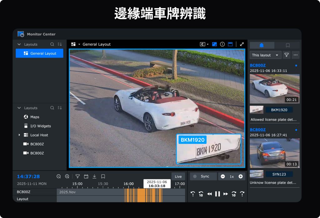 BC800Z 擁有邊緣端 AI 辨識與事件偵測能力,支援煙霧偵測、車牌辨識,以及人流與車流統計等智慧功能,迅速判斷即時事件。(圖/ 群暉科技提供)
