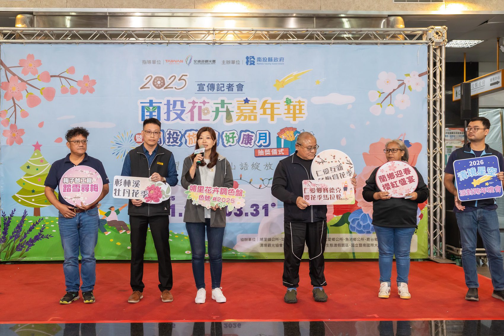 2025南投花卉嘉年華正式啟動,南投縣政府以全國最大花卉產區「埔里」為核心,串聯縣內11鄉鎮市冬季至春季花季活動,打造連續四個月的超大型觀光季,為南投帶來新一波旅遊熱潮。26日在縣府大廳舉辦活動記者會,由縣長許淑華主持,並抽出「南投旅遊好康月」最受矚目的壓軸大獎—特斯拉得主,同時邀請大家冬季到南投賞花。