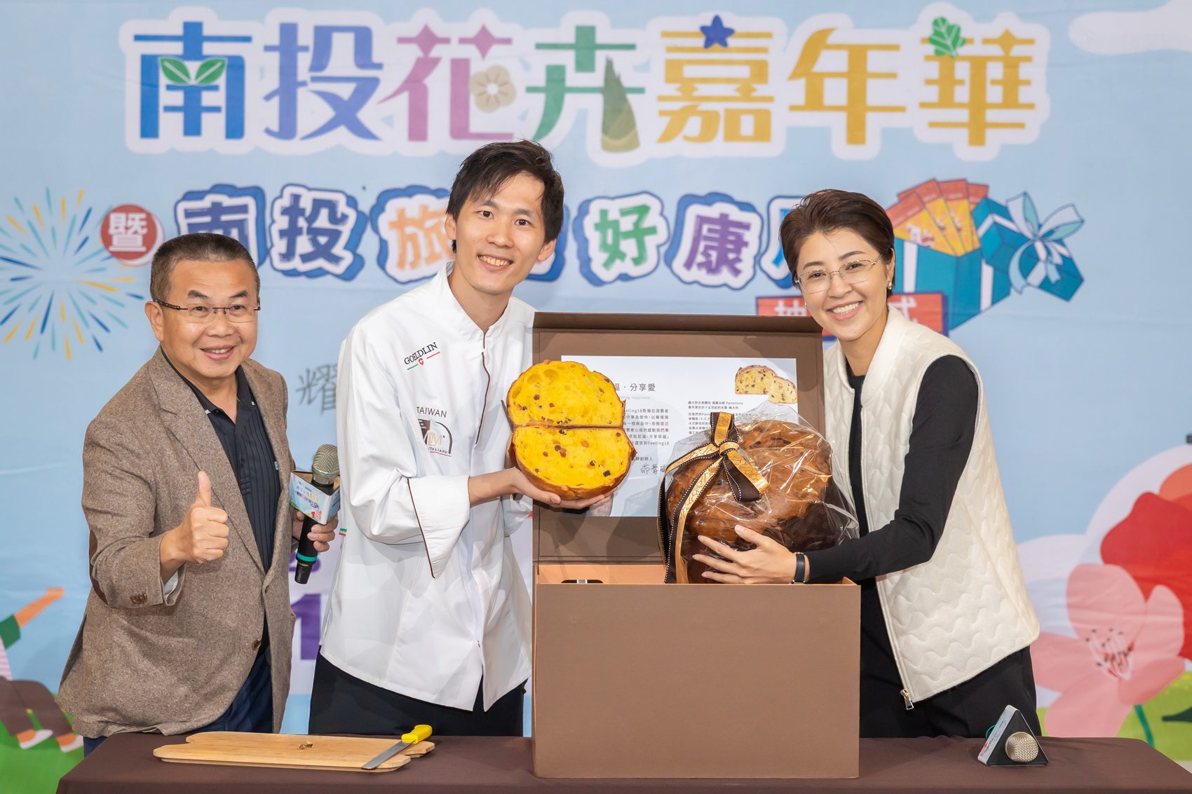 Feeling18創辦人茆晉(日牂)也在活動中,帶來台灣高鐵商務艙指定點心—可可椪柑蛋糕及台灣隊上個月在世界盃聖誕麵包大賽奪得總冠軍的水果麵包潘那朵尼,象徵以南投土地孕育的素材站上世界舞台,提升南投國際能見度。許縣長肯定Feeling18長期投入地方,以高品質烘焙結合在地花果香氣,讓花卉嘉年華增添更多精緻亮點。