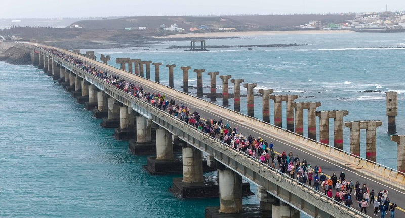 今(13)日,澎湖縣政府秋冬軍事主題旅遊活動「2025 澎湖大行 軍」第二梯次在跨海大橋壯闊展開,再次吸引1,500名民眾、旅客與軍事迷熱情參與。縣長陳光復、陸軍澎湖防衛指揮部陳俊源中將與多位貴賓蒞臨現場,活動在國軍官兵隊伍的帶領下,自西嶼端啟程,迎著東北季風逆風前行,以腳步橫越跨海大橋,親身體驗冬季海島的壯麗與澎湖特有的風景魅力,場面盛大、氣勢十足。