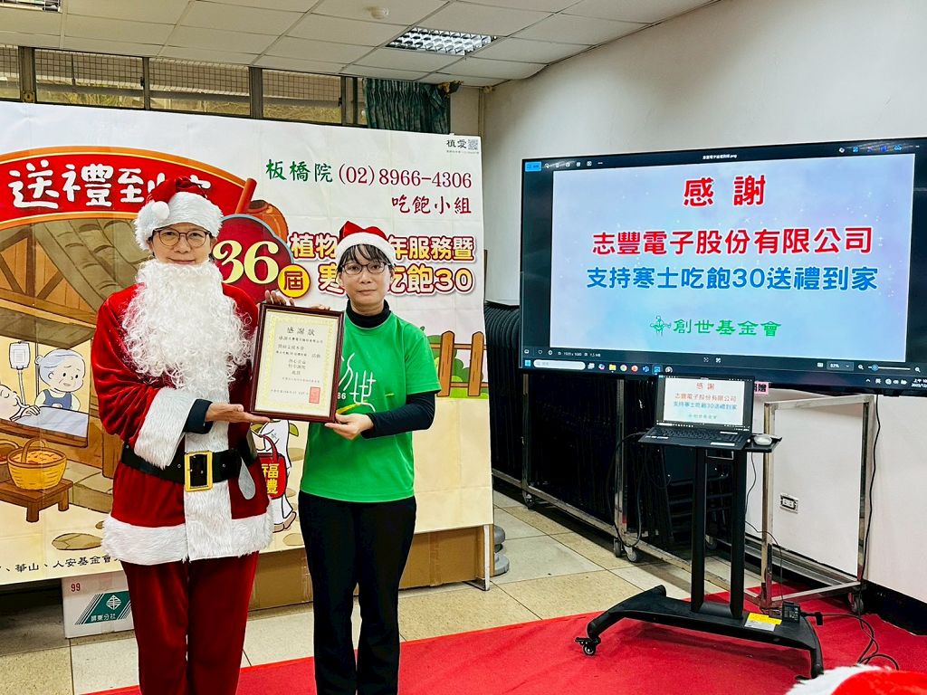 志豐電子重視永續與社會關懷,落實ESG理念,公司治理主管林依萍表示,聖誕節是傳遞祝福與溫暖的時刻,志豐今年化身「聖誕好人」至創世,捐助年禮及紅包,並將這份愛心作為禮物,為植物人家庭送上最實質需要的溫暖與祝福,我們深知弱勢家庭面臨照護與經濟的雙重壓力,希望能拋磚引玉呼籲各界善心人士齊心齊力支持創世「送禮到家」活動,讓弱勢家庭也能溫馨享有一頓豐盛的團圓飯。