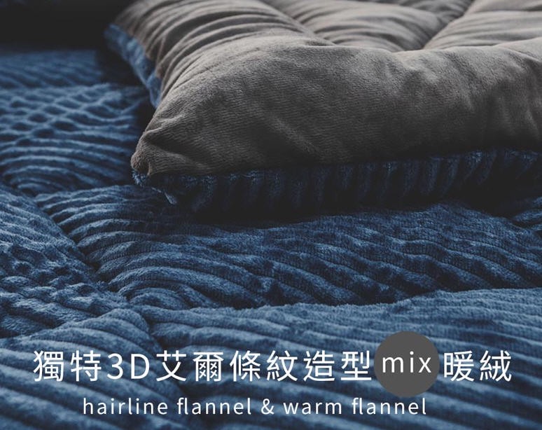 絲薇諾法蘭絨暖被:高密度法蘭絨蓬鬆保暖,3D條紋造型柔軟有層次;一體成型車和設計不易位移,輕暖好洗適合濕冷氣候。