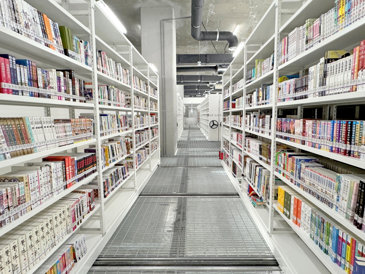 為迎接屬於台中的世界級圖書館,市圖總館一步步建構完整館藏,從館員細心將書籍分門別類、邀請市民參與接力上架,到如螞蟻雄兵般齊心協力搬運與整理藏書。全館每一本圖書,皆由館員逐冊掃描晶片匯入自動化系統,再運送至各閱覽區陳列上架;其中,地下一樓的「密集書庫」正是扮演圖書典藏與運輸中心的關鍵角色。