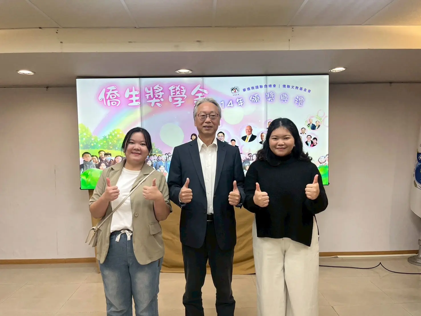 僑聯文教基金會舉辦之「114年僑生獎學金頒獎典禮」日前於華僑救國聯合總會會所隆重舉行,表揚來自全台各大專校院表現優異的僑生。僑光科技大學境外學生陳幼茄與游瑟婷兩位同學在眾多申請者中脫穎而出,榮獲校外獎學金肯定,不僅展現個人學習成果,也突顯本校在境外生輔導與培育上的用心與成效。