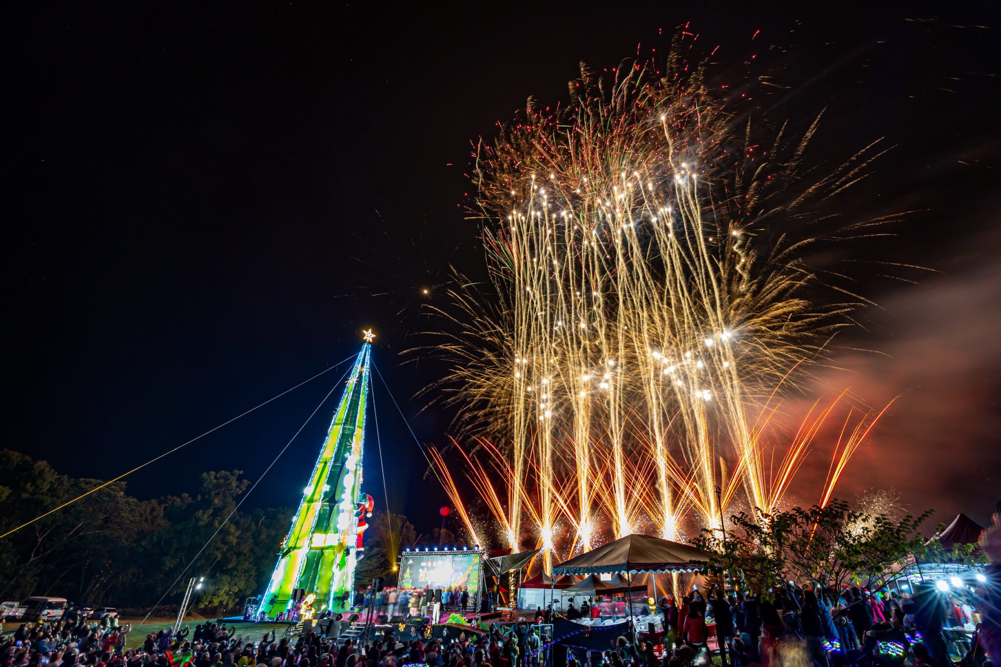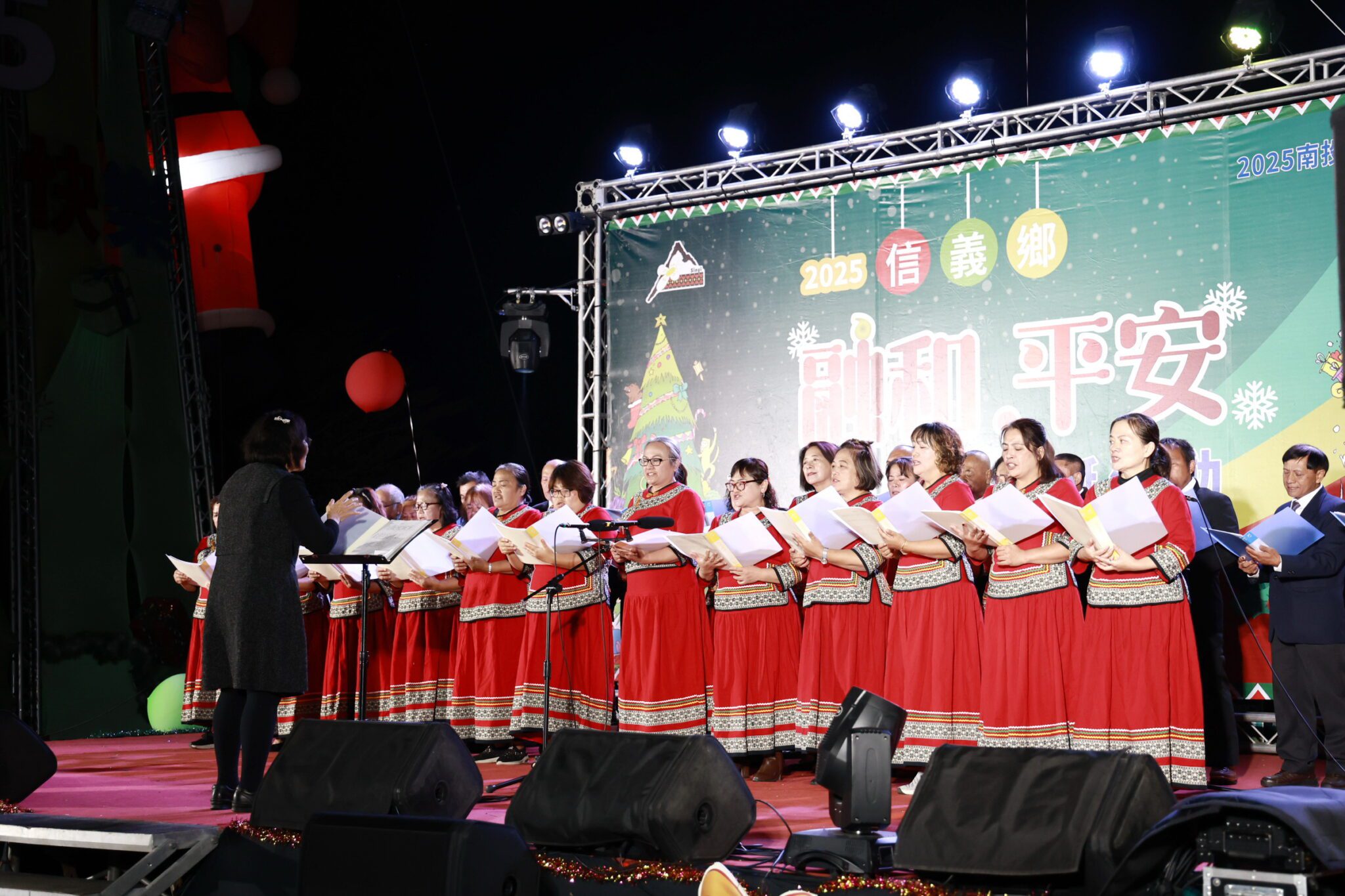 許縣長為信義鄉羅娜聖誕樹點燈 與遊客共度歡樂平安夜 2025南投花卉嘉年華系列活動-信義鄉羅娜聖誕活動,24日晚間在羅娜村羅娜文化景觀園區盛大展開,除有27公尺高的閃亮聖誕樹,還有沿著部落大街打造的燦爛燈海隧道,加上精彩節目連串的天主堂聖誕晚會及火把部落巡禮報佳音等特色活動,吸引大批人潮湧入,縣長許淑華與信義鄉長全志堅帶領貴賓們共同點亮聖誕樹主燈,互相高聲祝福聖誕快樂。