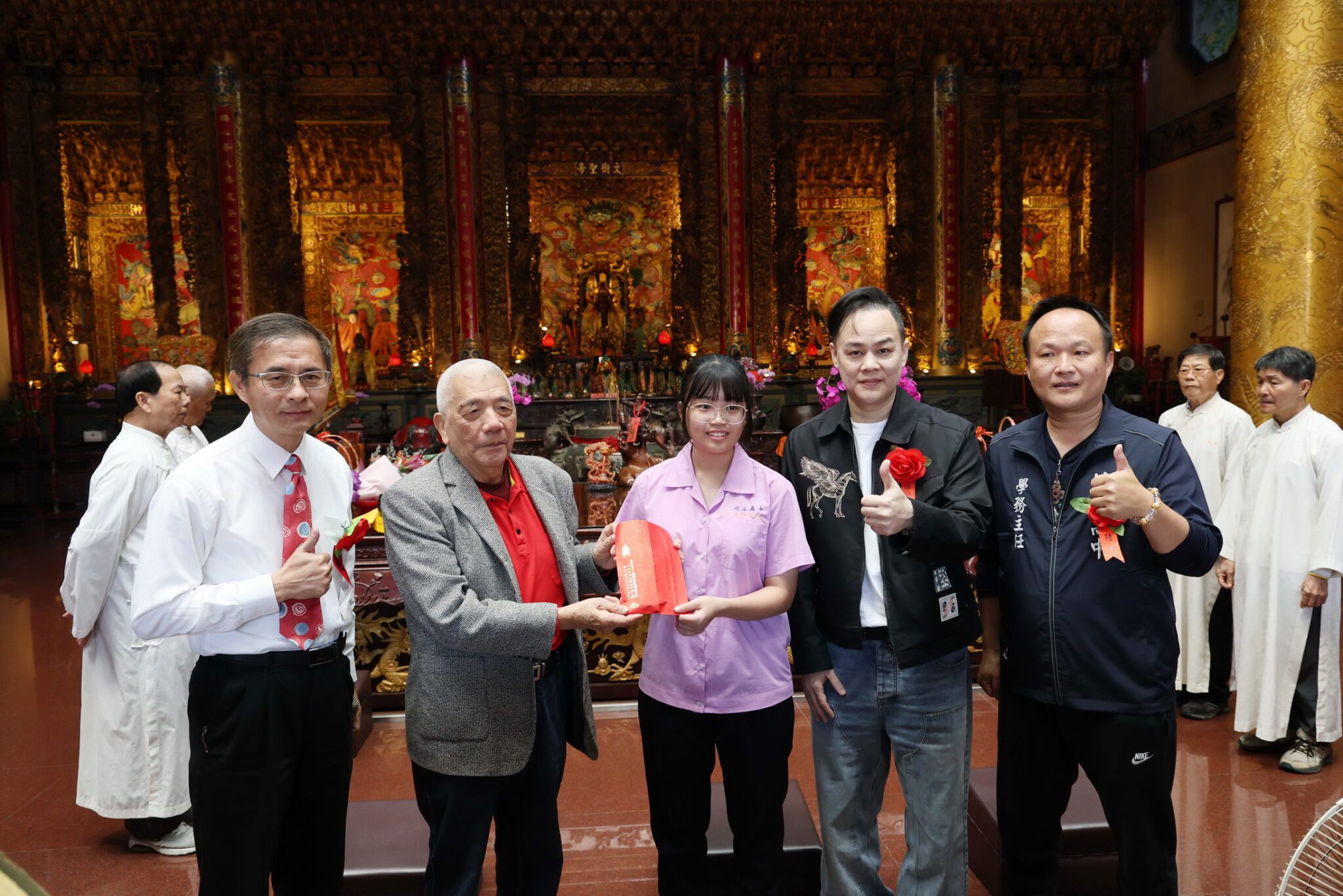 30日上午,竹山克明宮主委楊非武特別在克明宮文昌帝君神案前頒贈獎金2萬元及紀念品,公開表揚三校校長與教師團隊,感謝他們長期為竹山孩子默默耕耘,及對偏鄉地區教育的用心付出,並為南投縣的教育創下佳績;縣長許淑華、縣議員蔡孟娥出席觀禮,並對克明宮長期以來支持縣政推動,關懷教育及弱勢,表達感謝肯定,儀式簡單隆重。