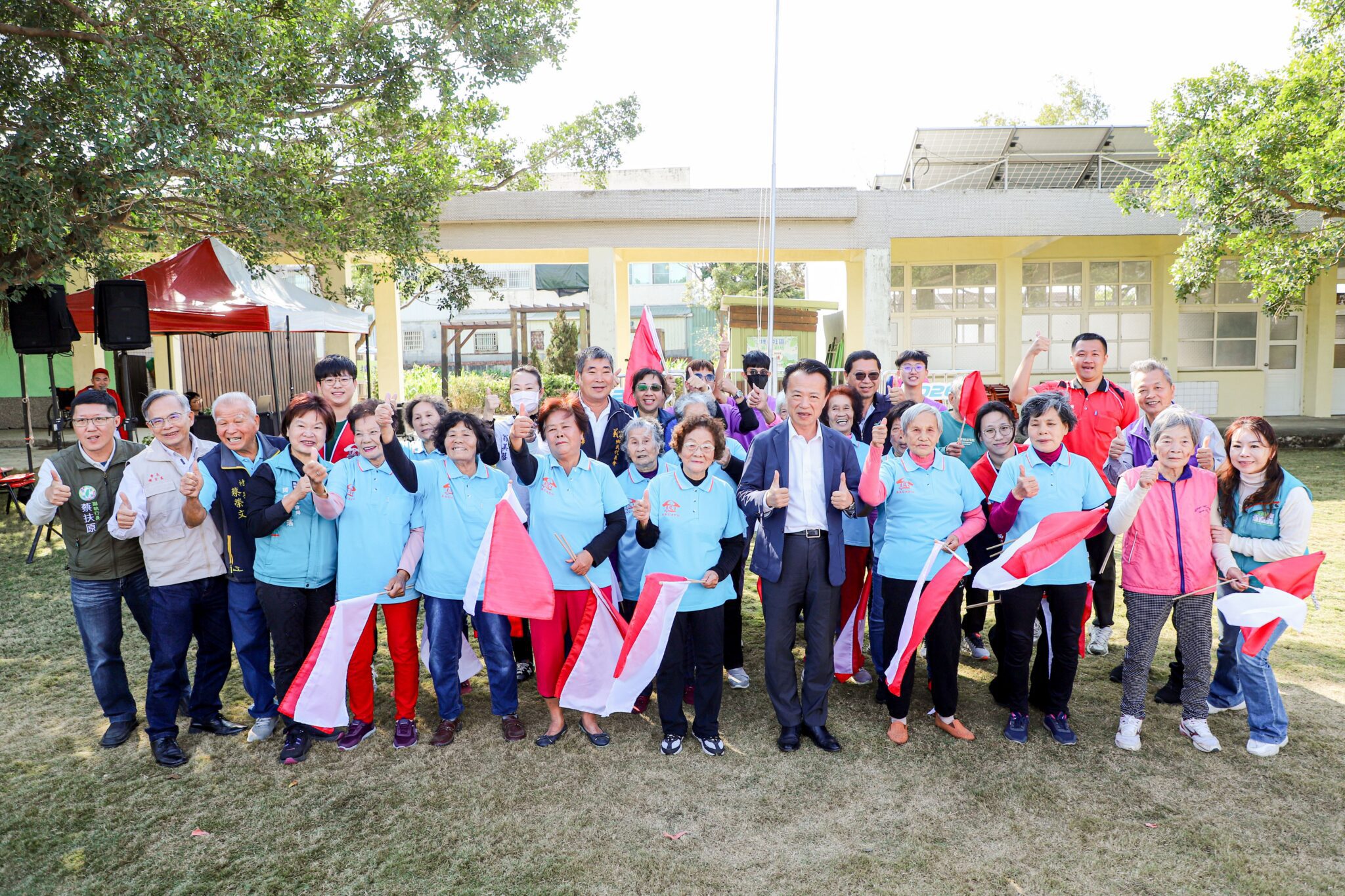 翁章梁說,整建後的教室與操場變得更舒適,提供長輩更好的活動場域,而且今天正好是晴天,鼓勵長輩多走出戶外,適度曬太陽,維持身體健康與作息品質。