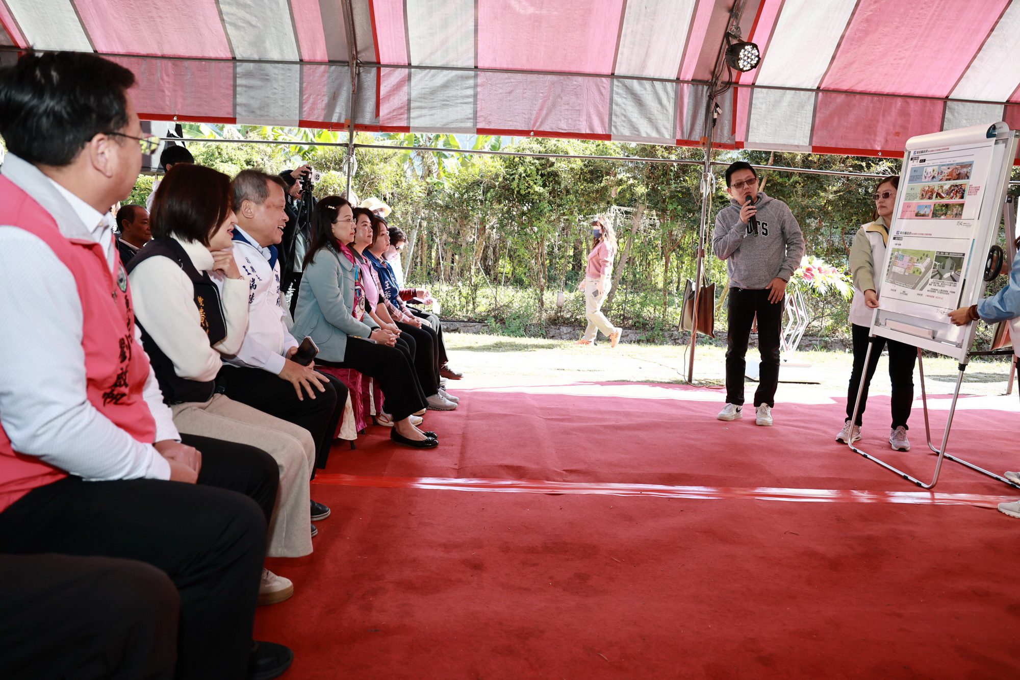 包括衛生福利部長照司副司長吳希文、縣議議員王秋淑、陳淑惠、林芳伃、林儒暘、魚池鄉長劉啟帆、魚池鄉民代表會副主席王若嵐及多位鄉民代表、多位村長及鄉親們近百人齊聚一堂,歡喜見證新大樓的動土。