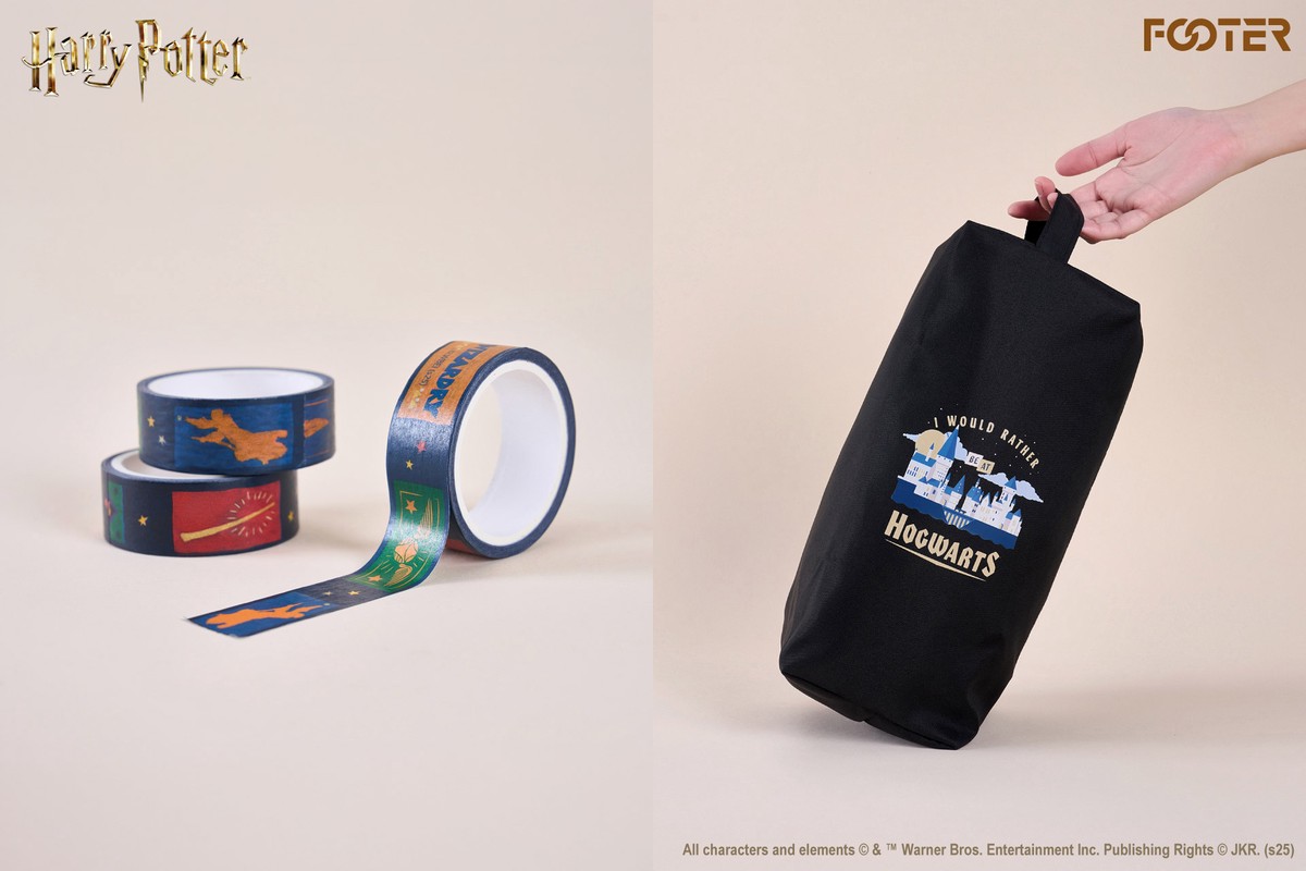 為回饋粉絲支持,上市期間FOOTER同步推出只送不賣的限量贈品《哈利波特》主題紙膠帶、多功能收納手提袋,紙膠帶上印有電影中的標誌性元素,手提收納袋更將霍格華茲形象呈現給大家,讓你在日常生活中也能感受哈利波特的奇幻氛圍。