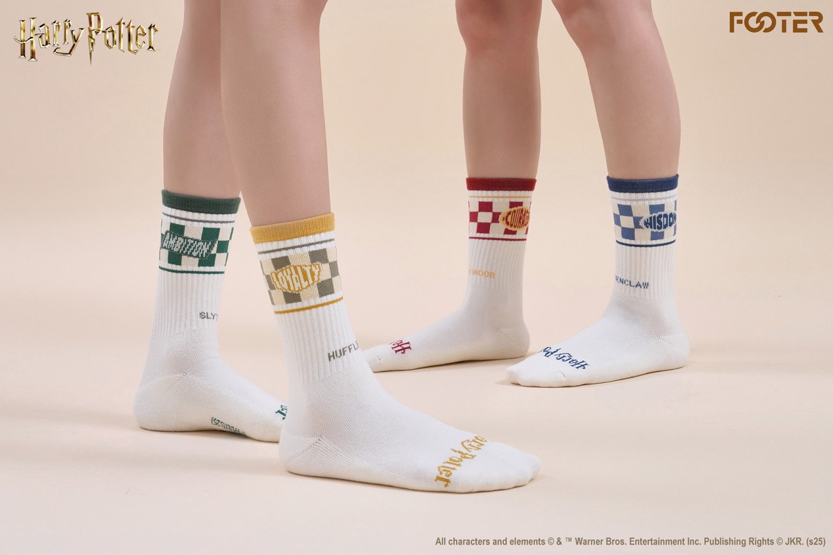FOOTER特別打造8款學院系列襪款,以兩種不同姿態呈現,一種以學院的代表動物來象徵葛來分多的勇氣與果敢、史萊哲林的智謀與野心、雷文克勞的機智與好學、赫夫帕夫的忠誠與奉獻;另一種則是以米格紋交織四學院的特色,穿上它,就像把四學院代表的精神織進每一步。每雙襪款皆擁有獨特魅力及風格,無論你喜歡哪個學院,都能找到最適合自己的歸屬。