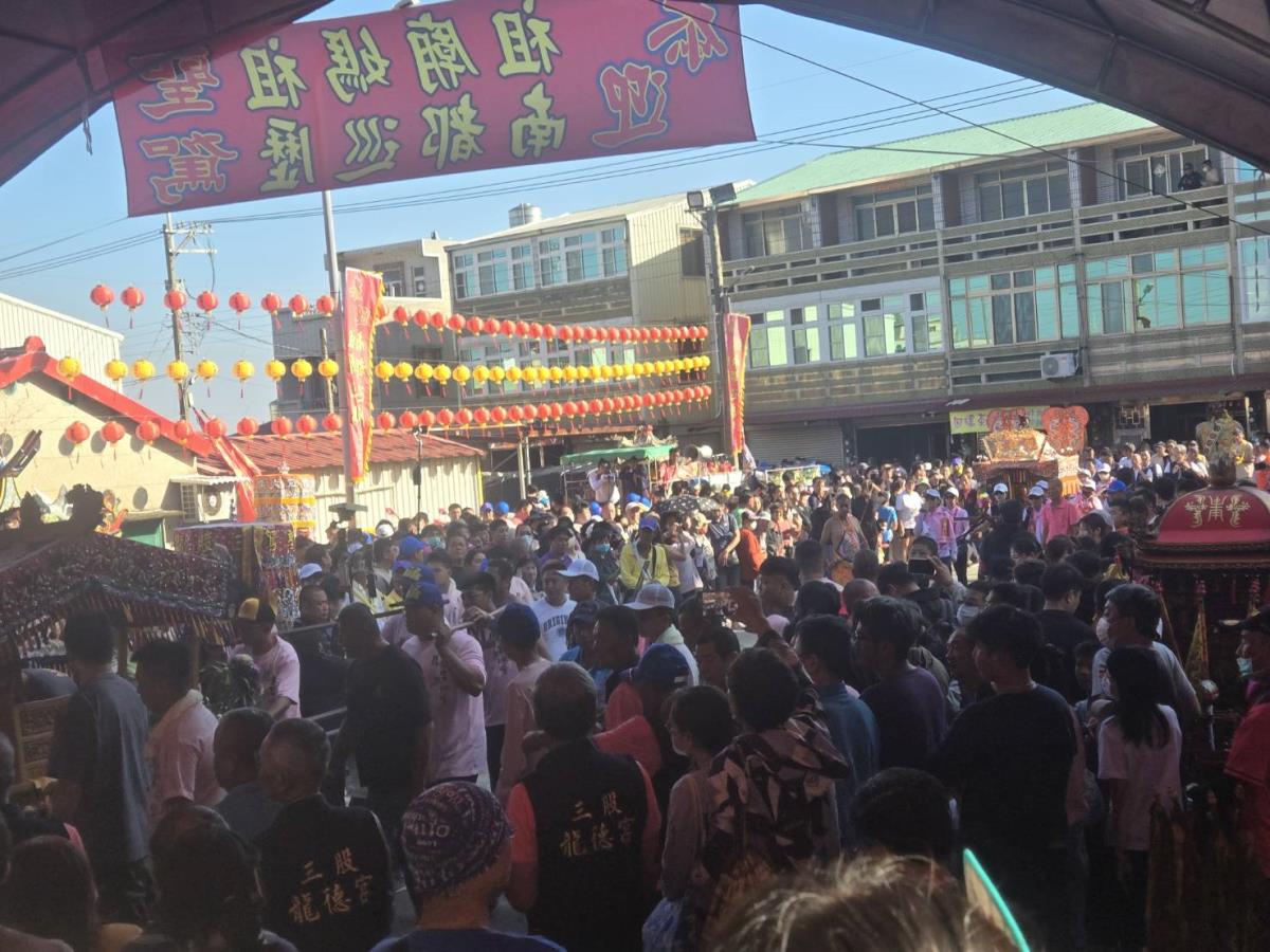 尤其中午抵達交陪友宮七股區三股龍德宮村莊外入口處時,龍德宮主委陳勝民率榮譽主委吳明虎、總幹事黃智育、常務監查委員黃茂程、里長黃仙立及委監幹部與子龍里長謝清安、子龍廟永昌宮主委林文章、總幹事林宣德、委監等幹部、跳鼓隊、女子神轎隊及數百名虔誠信眾持香恭候迎接北港黑面三媽神尊聖駕,於中午一時抵達,眾信徒跪迎聖駕,董事長蔡咏鍀及副董事長吳炳俊等董事幹部,大受感動。引領信徒及神轎等隊伍於三村莊街頭、巷道進行祈安賜福遶境活動,途經三股國小、三股里新建活動中心時神轎特地停留巡遶賜福,接受信徒定點焚香膜拜。沿途商家住戶早已設立香案焚香祈求息災賜福,當朝天宮媽祖神轎抵達龍德宮廣場前真是萬頭鑽動,炮聲響震天, 約三千人擠滿廣場,爭相膜拜及「鑽轎腳」,在下午三時三十分許,在眾信徒及幹部恭送至將軍區往一個行程。