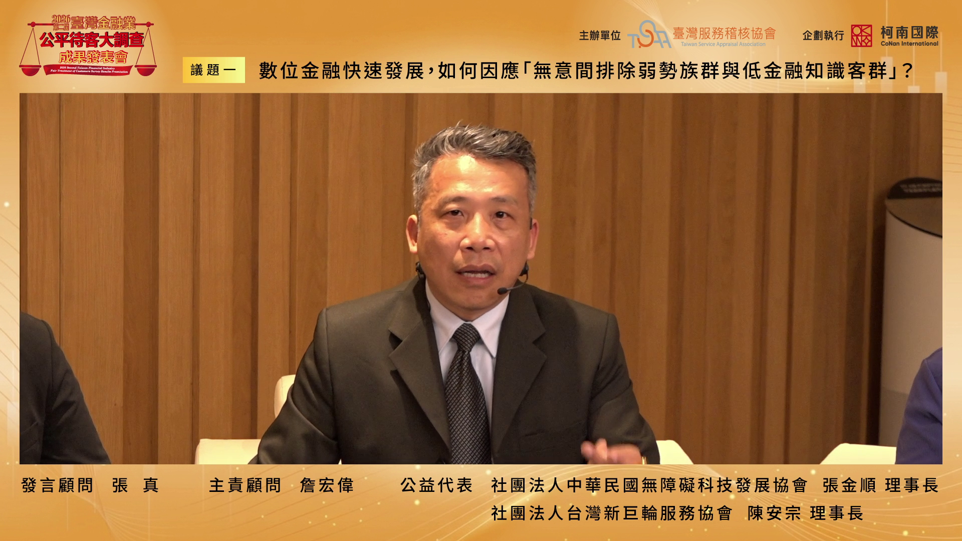柯南國際顧問團隊與公益團體代表在線上論壇中呼籲,未來應以數位平權為核心,兼顧安全防禦與人文溫度。無障礙科技發展協會張金順理事長表示,數位服務不該只是評鑑檢查表,而是透過同理心走向「賦權」,消弭人為障礙;台灣新巨輪服務協會陳安宗理事長則提醒,服務應重視客戶「尊嚴」,多一點感性與彈性,才能讓弱勢族群在金融服務中真正感受到被尊重。TSAA臺灣服務稽核協會理事長陳忠寅期盼,金融領航者能將自動化與人文溫度結合,共創友善體貼的正向服務循環。