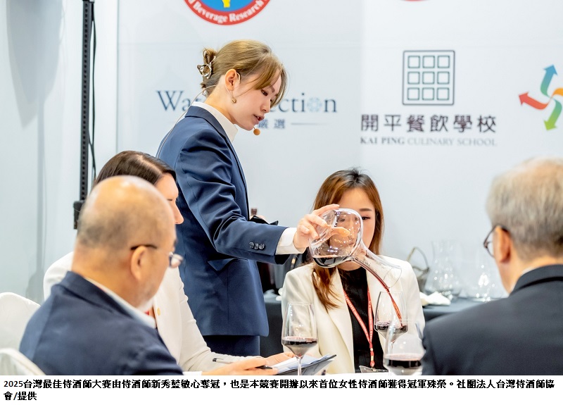 台灣侍酒師協會整合各領域飲品專業,打造精彩競技與深度交流,以加深產業人才培育的專業基礎,加廣侍酒師需具備的知識領域。秉持此初衷,今年展現深厚專業底蘊與累積的國際經驗,用舉辦國際規格賽事的堅強能量辦理酒、水、茶三大飲品專業賽事,競賽於2025台北國際酒展熱鬧落幕。其中,「台灣最佳侍酒師大賽」睽違六年重返展場,於展前就創造高關注度,還首度同場舉辦「臺灣最佳侍茶師大賽」及「台灣最佳品水師大賽」。三大飲品職人齊聚,最終三項賽事均誕生年度冠軍,「2025台灣最佳侍酒師大賽」更迎來2010年開賽以來首位女性冠軍,成為本屆最大亮點。