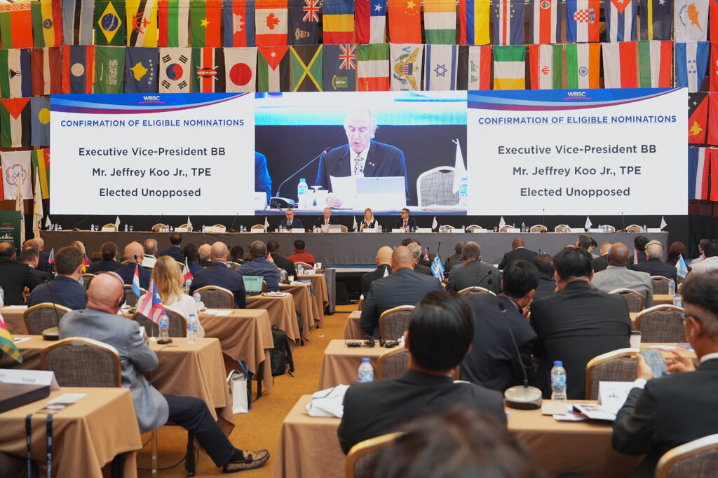 2025年第六屆世界棒壘總會(WBSC)會員大會18日於泰國曼谷登場,來自全球129個國家與地區、近300位會員代表齊聚一堂。在眾人見證下,亞洲棒球總會(BFA)會長暨中華民國棒球協會理事長辜仲諒無異議連任WBSC執行副會長,再次穩固臺灣於國際棒壇的關鍵位置。
